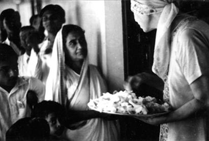 Photograph ID : 14/18 | Year : 1950 | Month : April | Day : 25 Photographer : Henri Cartier Bresson Place : Staircase door - Ashram courtyard Other People in the photograph : Sarala, Gangaram, Prithwin, Kanu